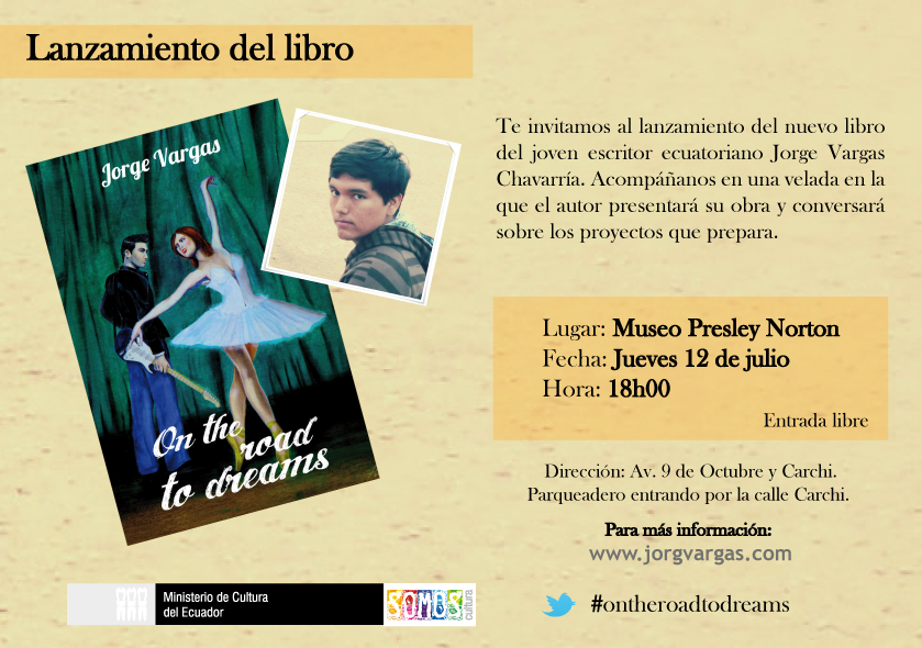 Queridos amigos y lectores, los espero este jueves 12 de julio en el lanzamiento de mi nuevo libro: «On the road to dreams«. El evento será totalmente en español y estaré firmando los libros que se vendan esa noche. El libro tendrá un costo de $5. A continuación, el afiche con todos los detalles. Si pueden, ayúdenme a difundirlo. ¡Acompáñenme en este sueño!